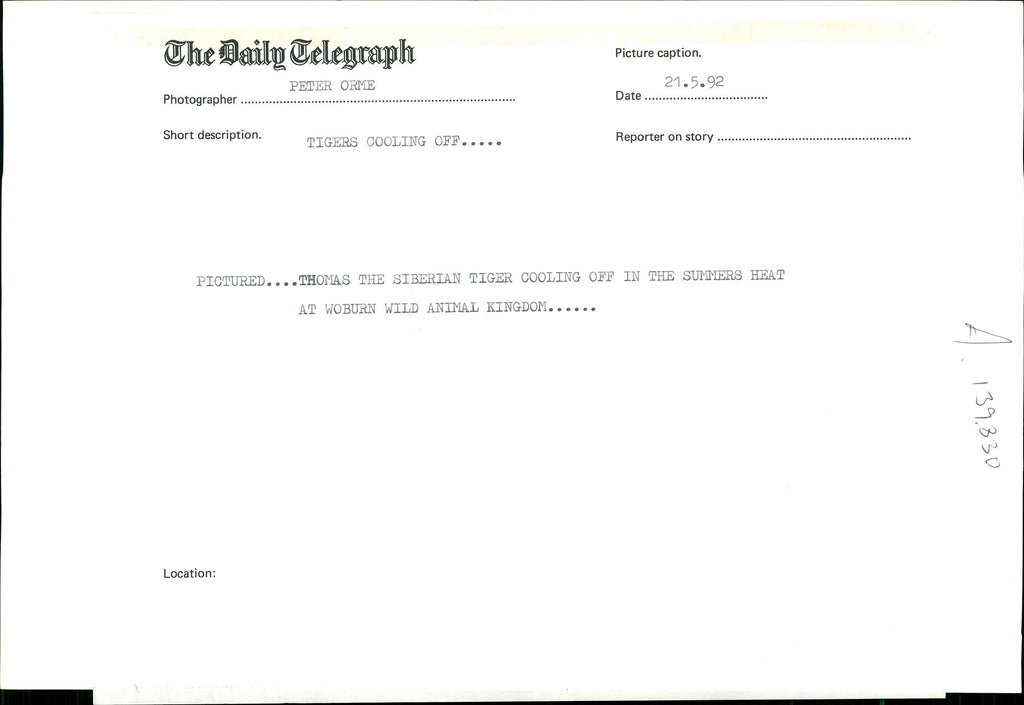 Thomas the siberian tiger. - Vintage Photograph