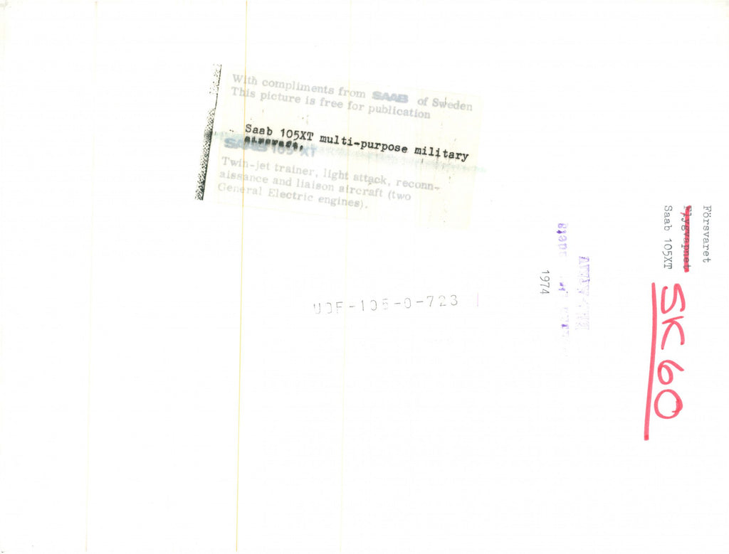 A Saab 105XT two-seater jet aircraft in the air. - Vintage Photograph