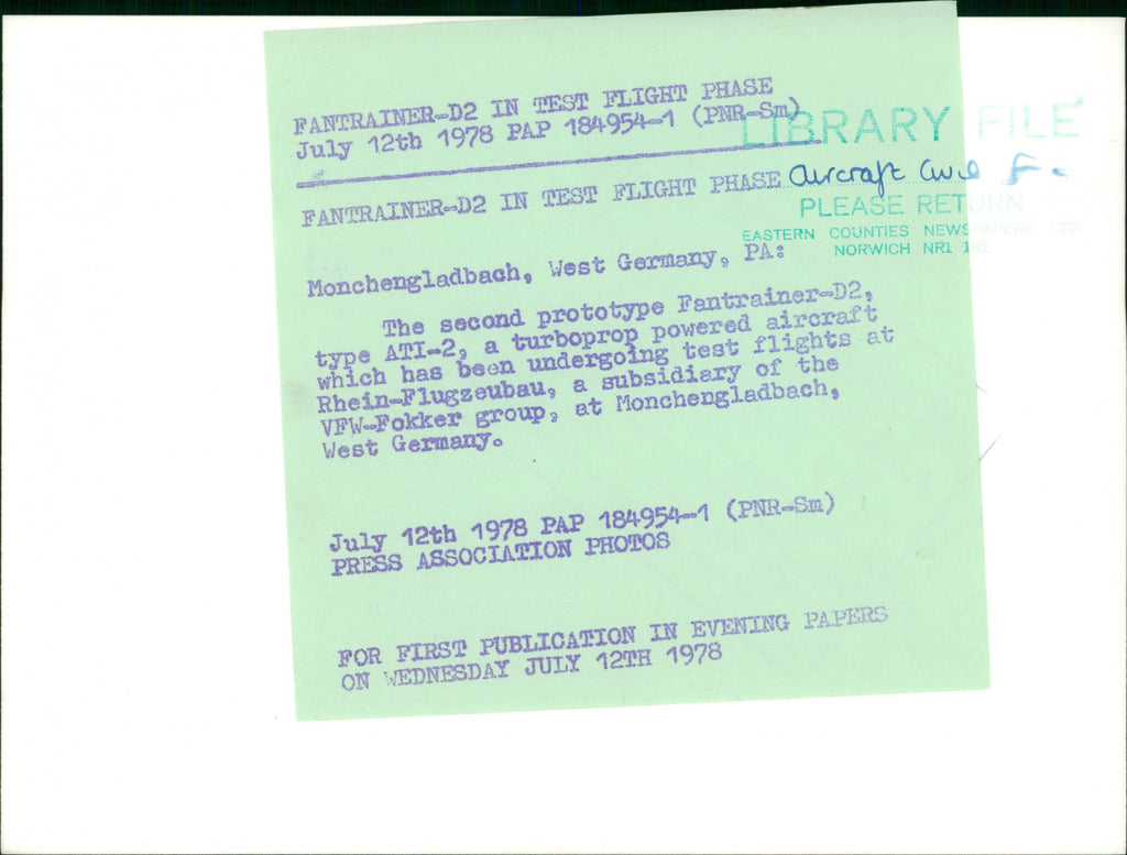 Aircraft: Civil: Fantrainer D2 in test Flight Phase - Vintage Photograph
