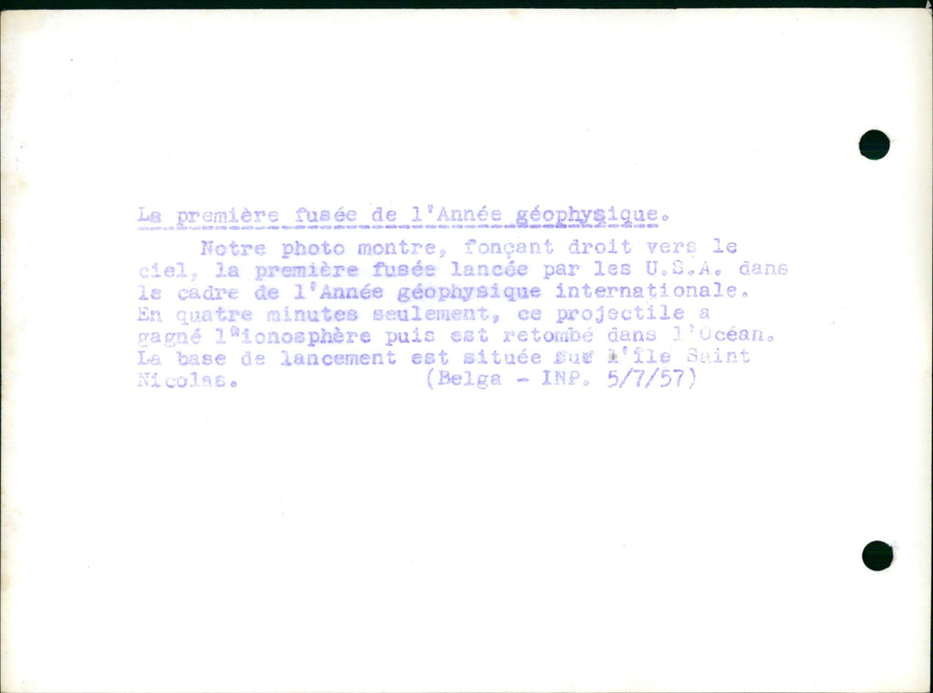 The US launched the first rocket of the geophysical year on the French island "île Saint-Nicolas".