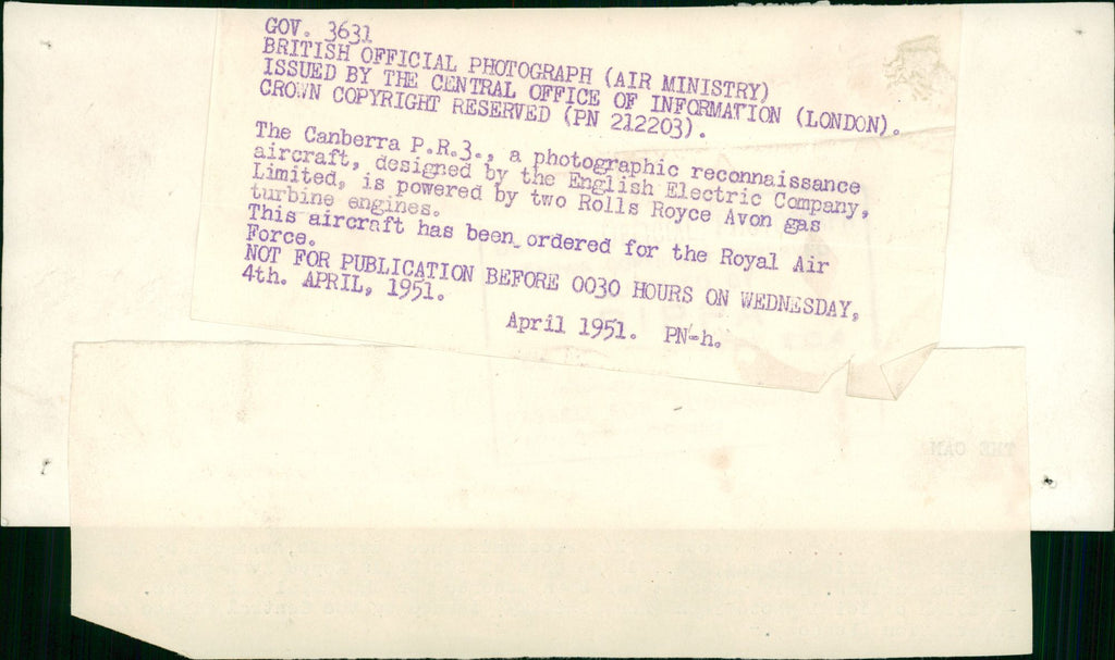 The Canberra P.R.3 - Vintage Photograph