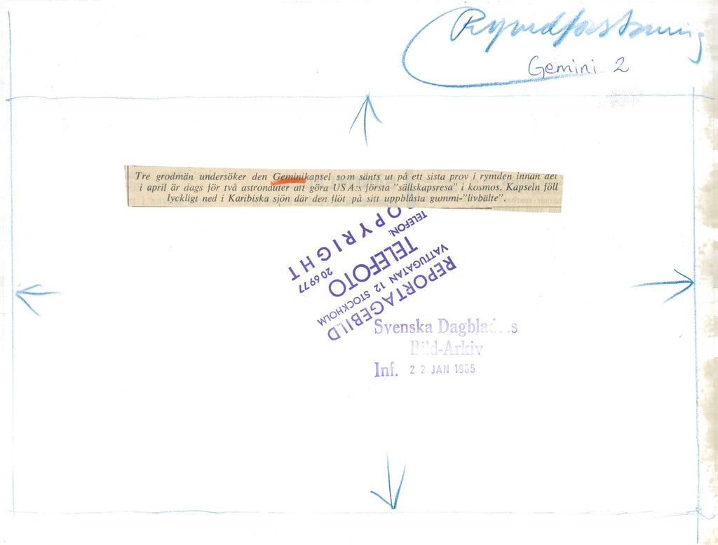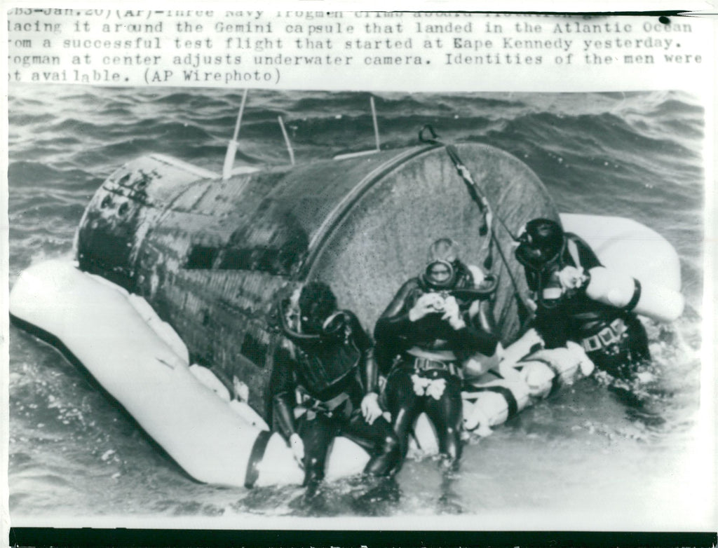 Three spokesmen examine the Geminikapsel sent on a final test in space - Vintage Photograph