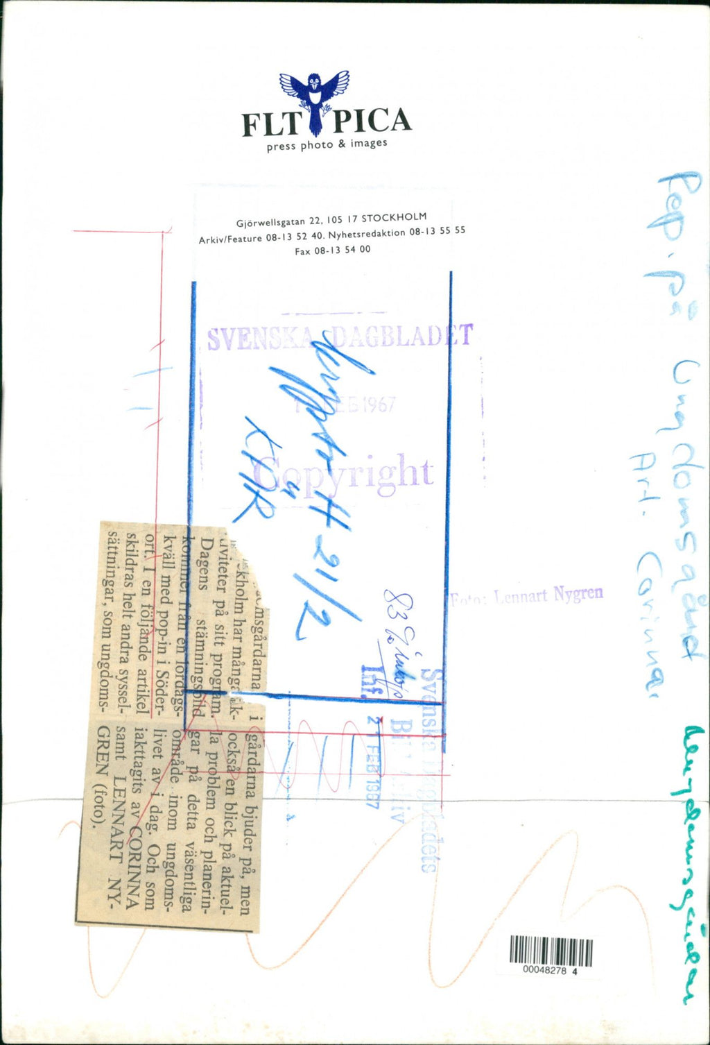 All the original vintage images are sold without watermarks. The prints are all over 30 years old and have been in the storage of the newspapers for decades. We sell them in the same conditions they were given to us by the archives.