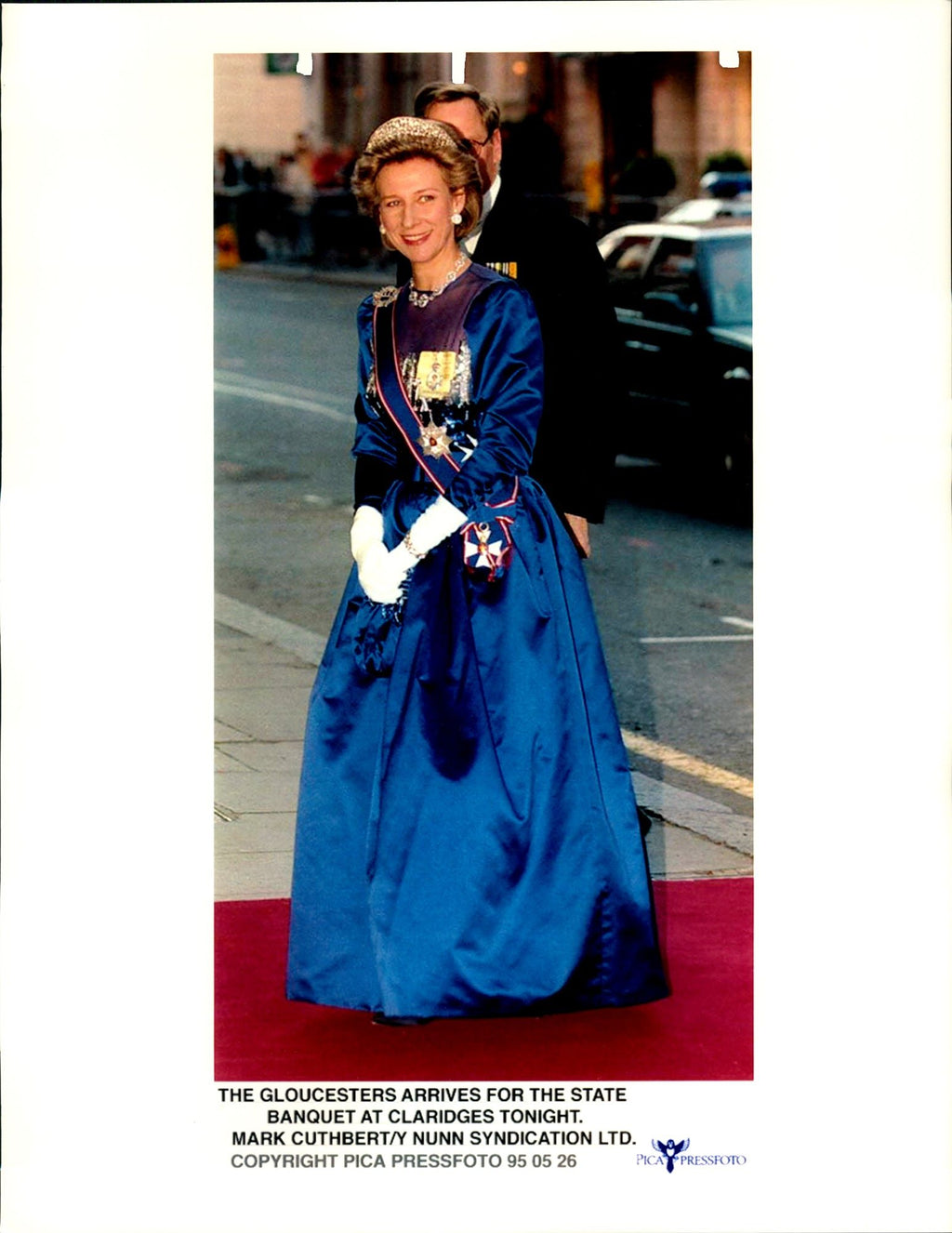 Birgitte, the Duchess of Gloucester arrives at the banquet at Claridges - Vintage Photograph