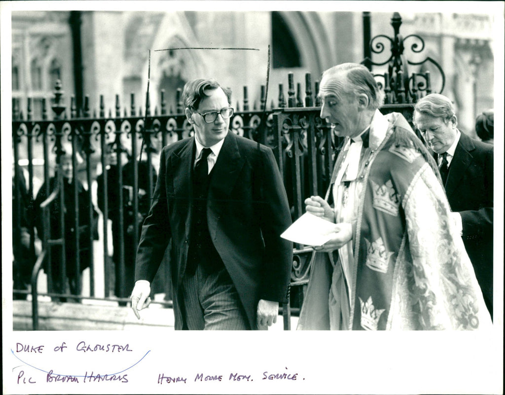 Front: Duke of Gloucester, Pic: Brian Harris, Henry Moore Mem. Service, Back: Duke of Gloucester, 438-11-86, Checked 7 DEC 1994