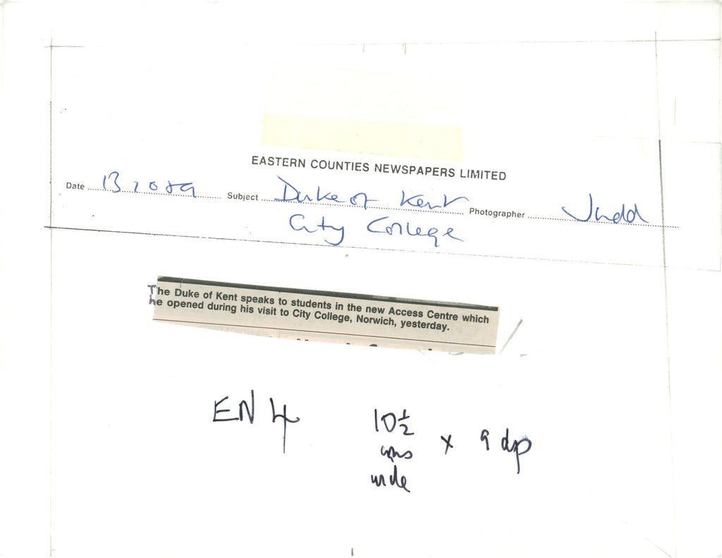 The Duke of Kent speaks to students in the new Access Center which he opened during his visit to City College, Norwich, yesterday.