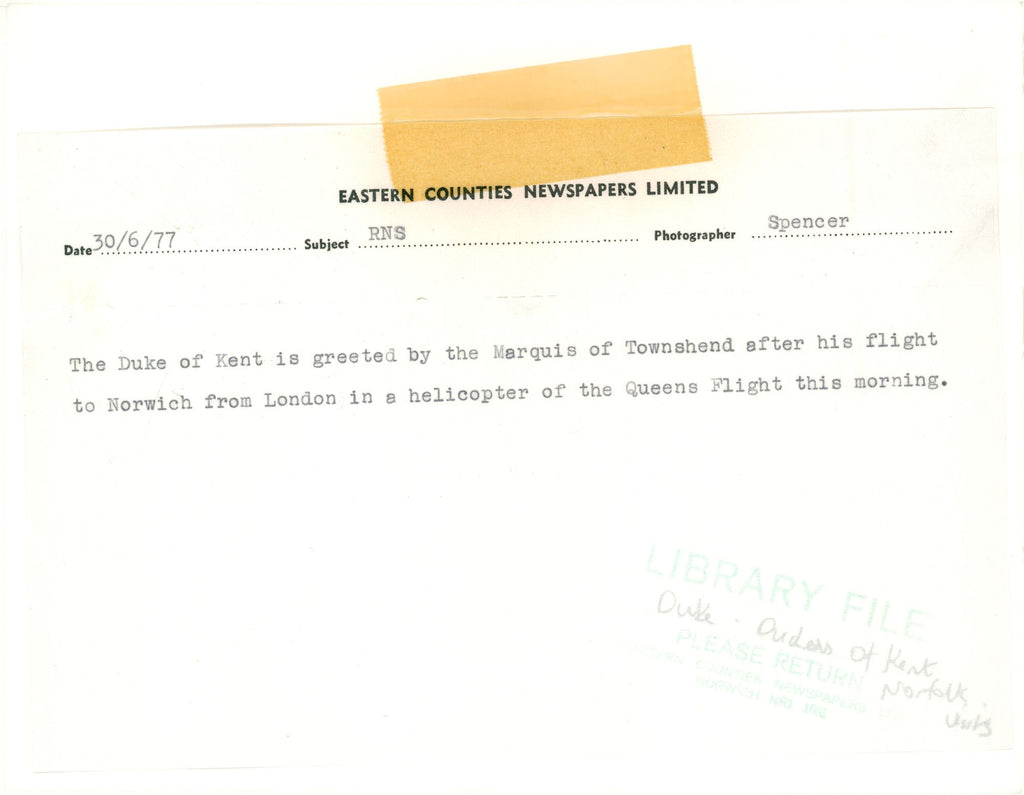 The Duke of Kent with Mr. C.L. Burnan, county president (center) and Mr. J. Anderson, county chairman.