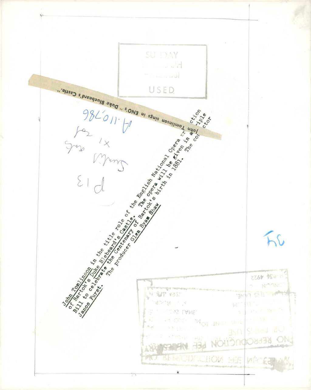 John Tomlinson sings in ENO's "Duke Bluebeard's Castle" - Vintage Photograph
