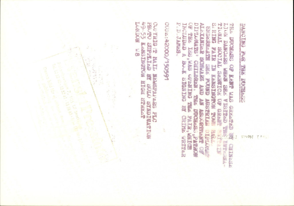 Katharine, the Duchess of Kent, greets the dancing girls during her visit to Kensington Town Hall - Vintage Photograph