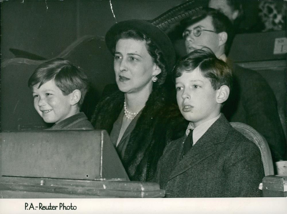 The Duchess of Kent and the Duke of Kent watching a circus turn at Olympia.