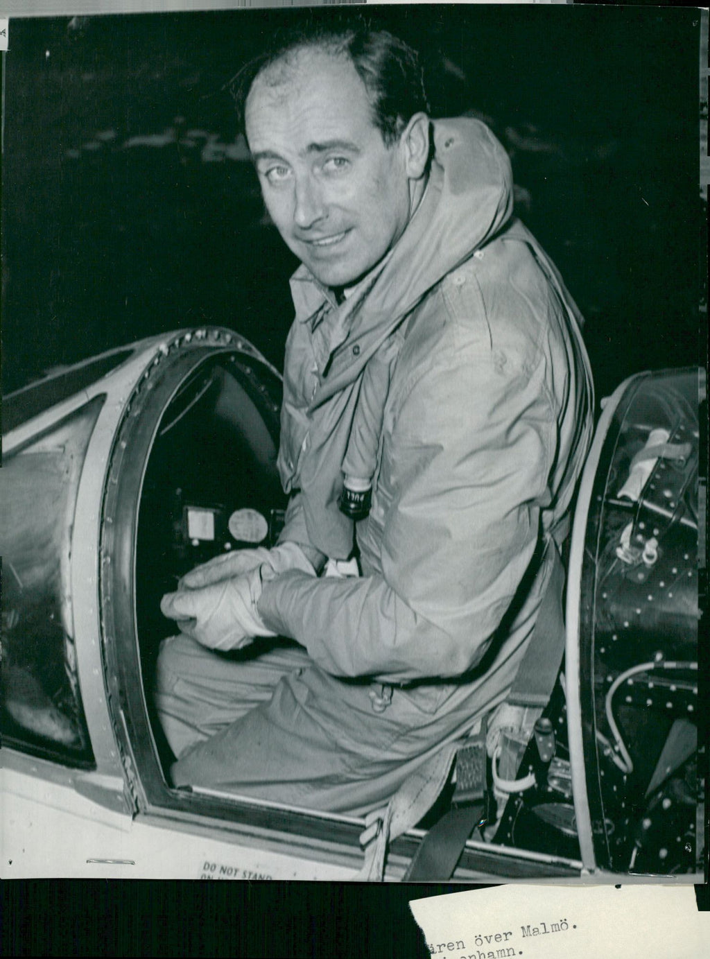 Neville Duke pilot flight arrivals to Copenhagen - Vintage Photograph