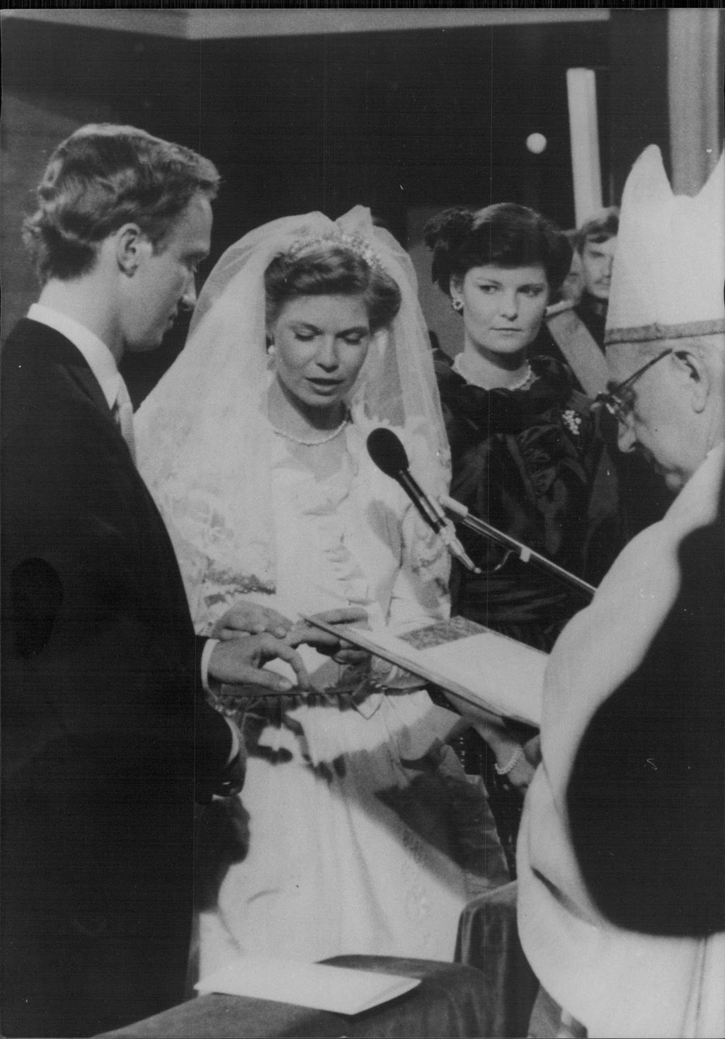 Princess Marie-Astrid and Duke Christian von Habsburg-Lothringen at their wedding. - Vintage Photograph