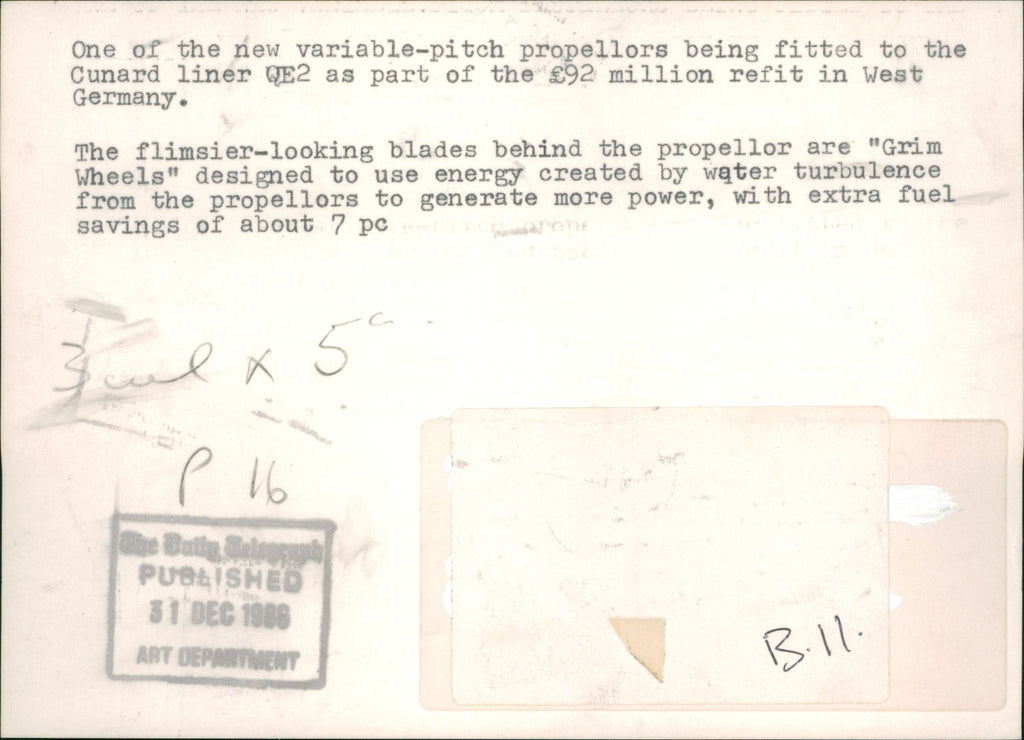 Queen Elizabeth 2 Ship (new propeller) - Vintage Photograph