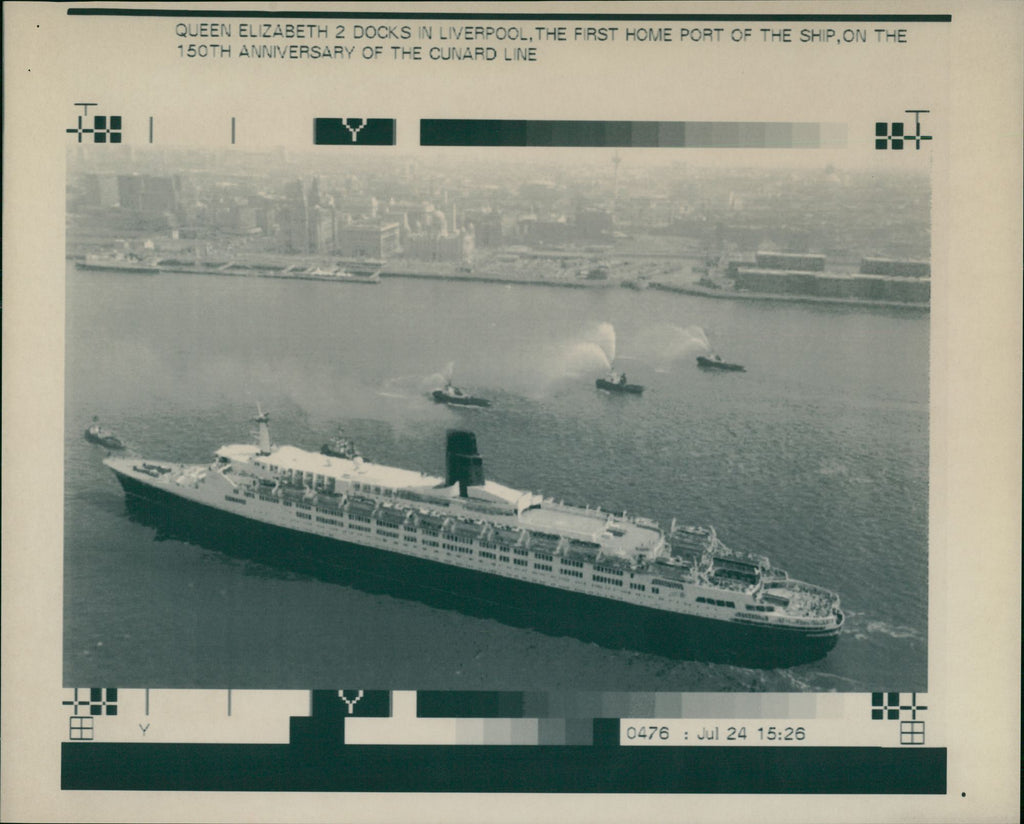 Queen Elizabeth 2 docks in Liverpool, the first home port of the ship on the 150th anniversary of the Cunard line