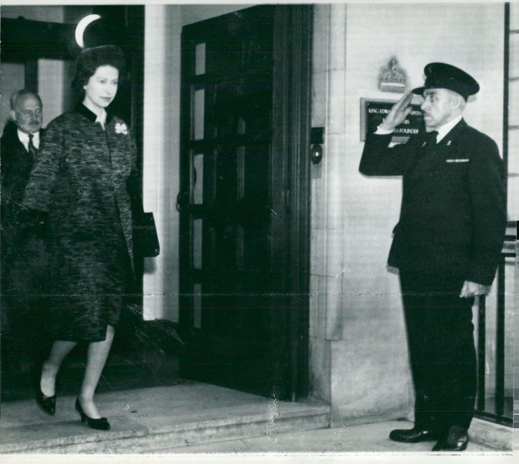 Queen Elizabeth after visiting the Macmillan bed - Vintage Photograph