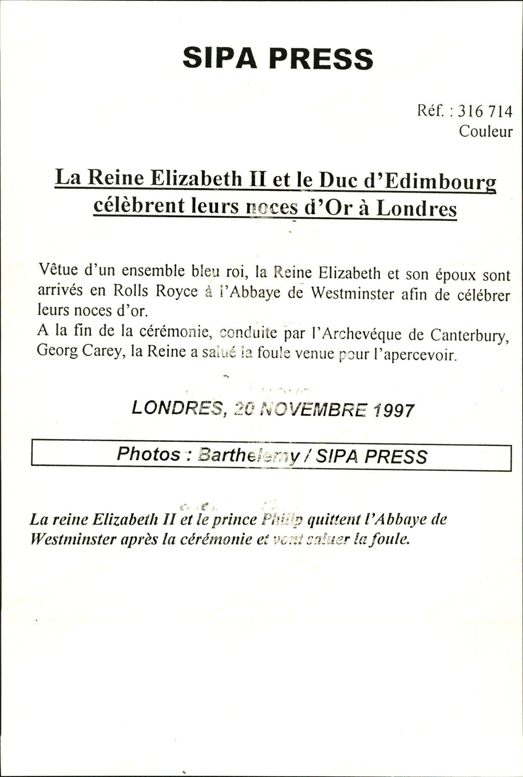 All our press photos are LIMITED ARCHIVE ORIGINALS - they are the actual prints that were used by the newspapers, they are not reprints or digital prints produced by us. All the prints are at least 30 years old and up to 100 years old.