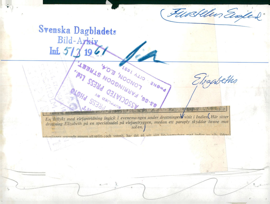 Queen Elizabeth and Prince Philip ride elephants while visiting India - Vintage Photograph