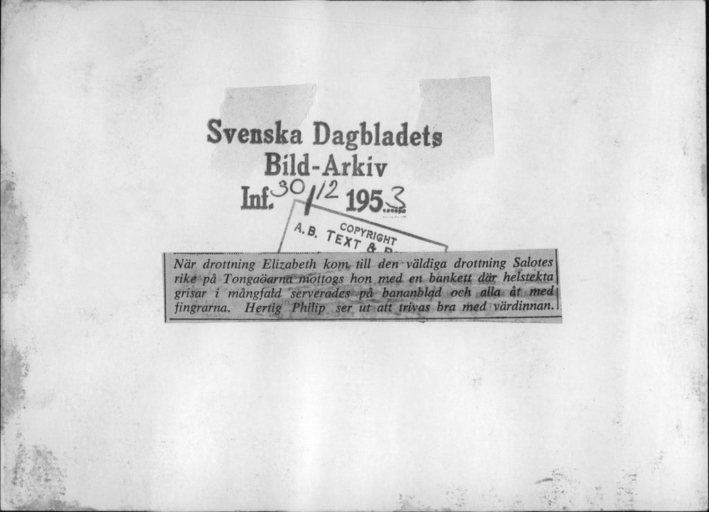 Queen Elizabeth and Prince Philip under the Welcome Bank on Tonga Islands. Prin Philip in conversation with Queen Salote Britain's monarch, Queen Elizabeth, Elizabeth II, State visit