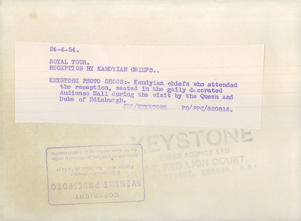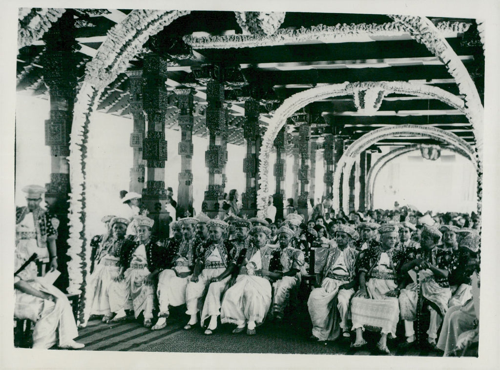 Queen Elizabeth and the Duke of Edinburgh visit Ceylon. Here Kandyian chiefs at the reception - Vintage Photograph