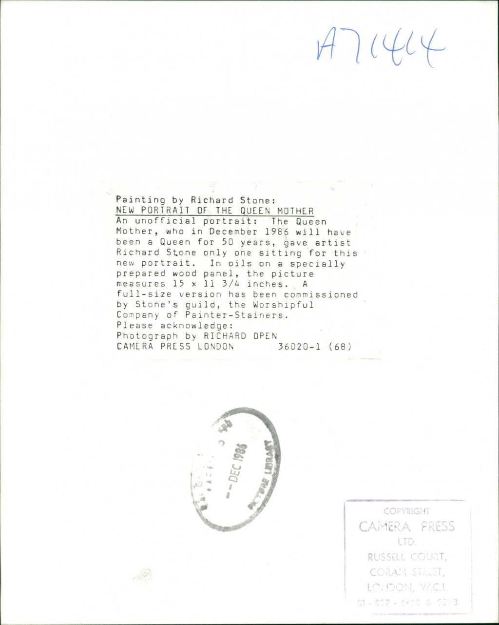 All our press photos are LIMITED ARCHIVE ORIGINALS - they are the actual prints that were used by the newspapers, they are not reprints or digital prints produced by us. All the prints are at least 30 years old and up to 100 years old.