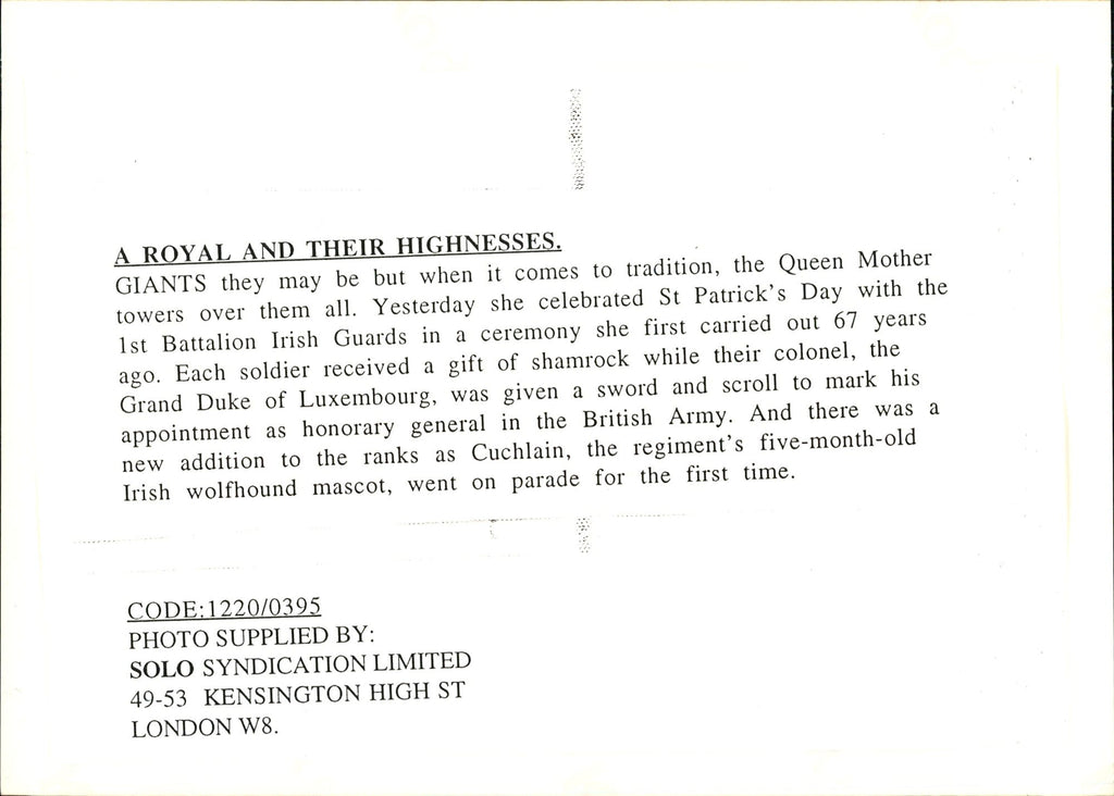 All our press photos are LIMITED ARCHIVE ORIGINALS - they are the actual prints that were used by the newspapers, they are not reprints or digital prints produced by us. All the prints are at least 30 years old and up to 100 years old.
