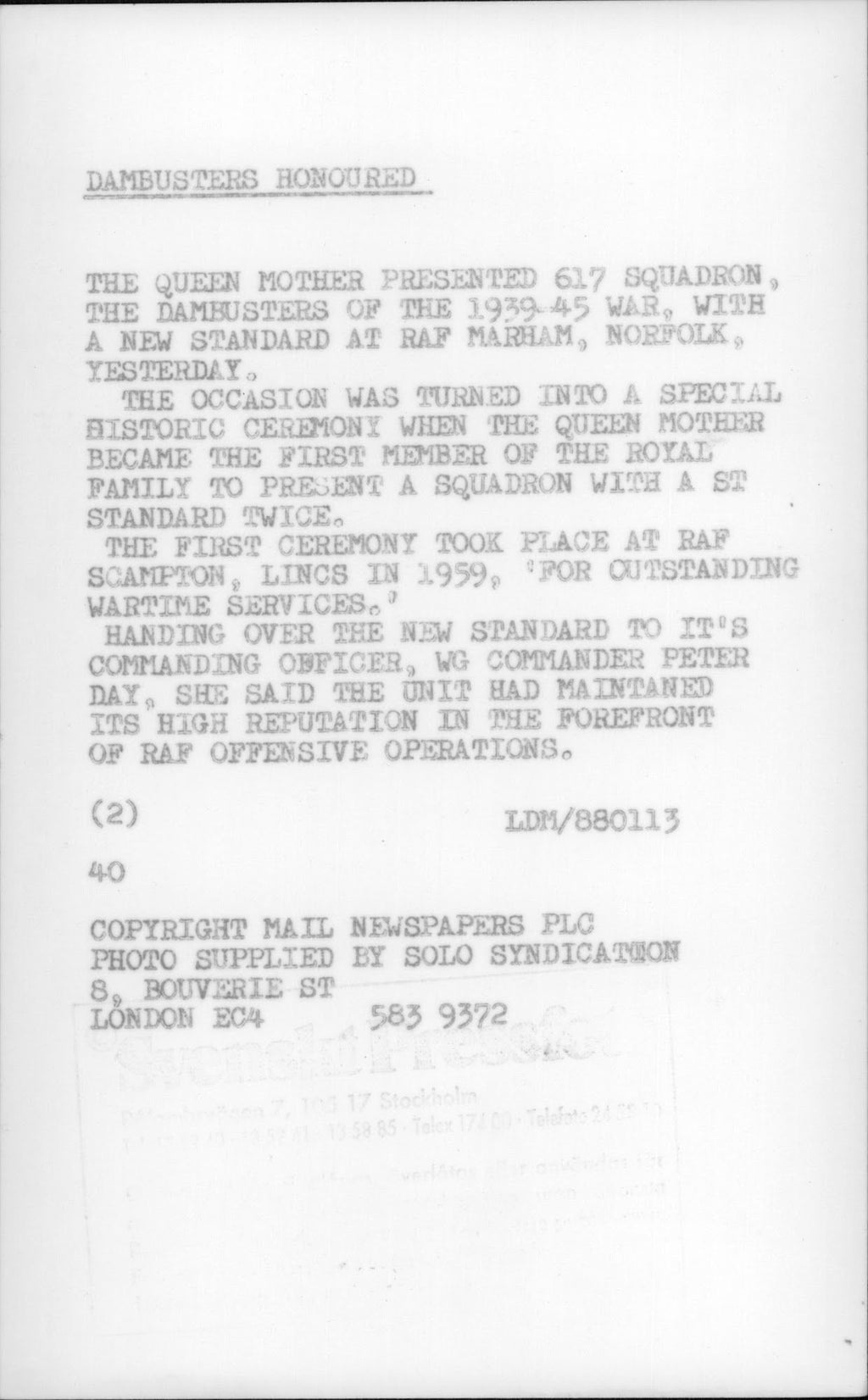 All our press photos are LIMITED ARCHIVE ORIGINALS - they are the actual prints that were used by the newspapers, they are not reprints or digital prints produced by us. All the prints are at least 30 years old and up to 100 years old.