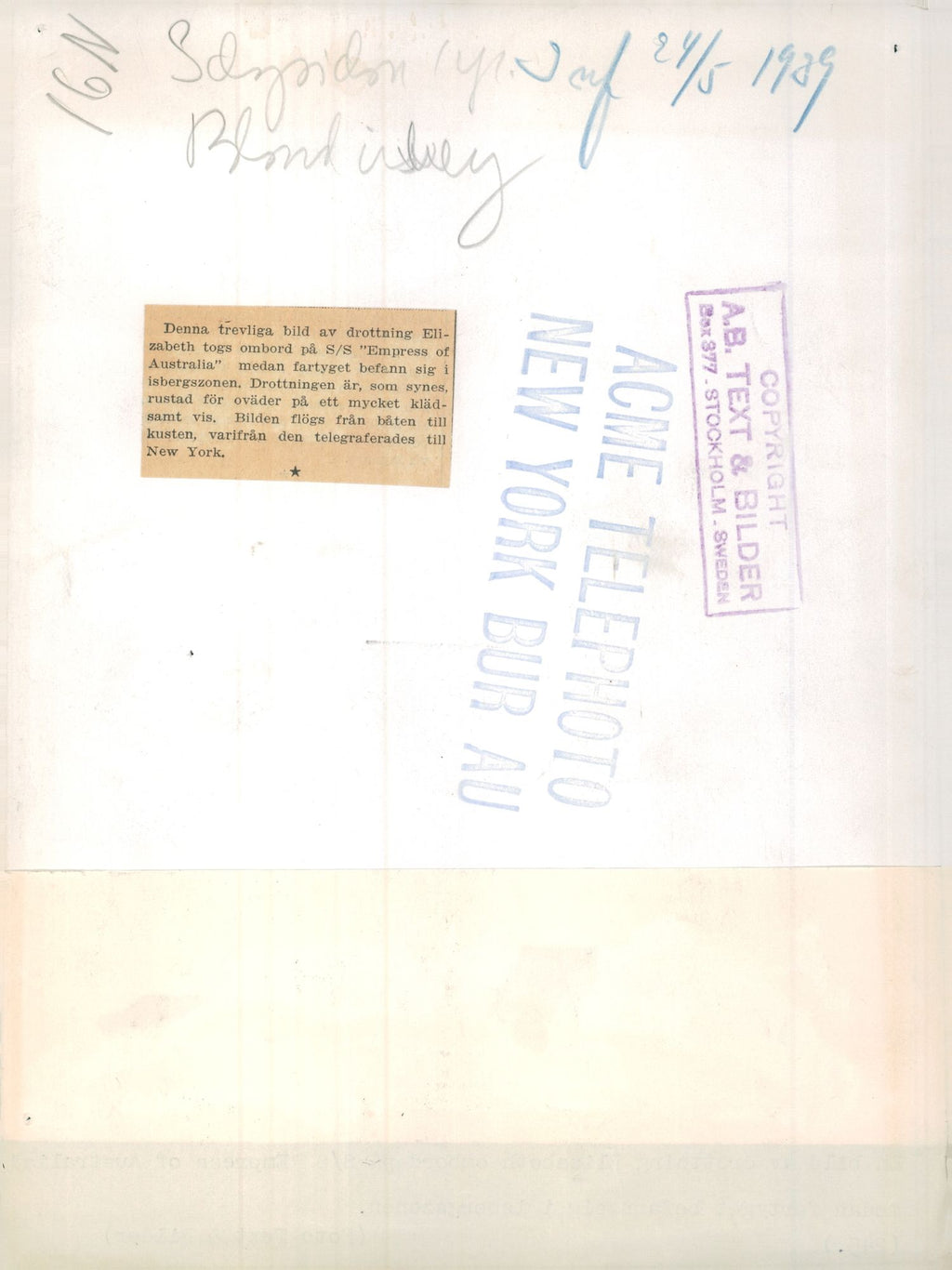 Queen Elizabeth, RMS Empress of Australia - Vintage Photograph
