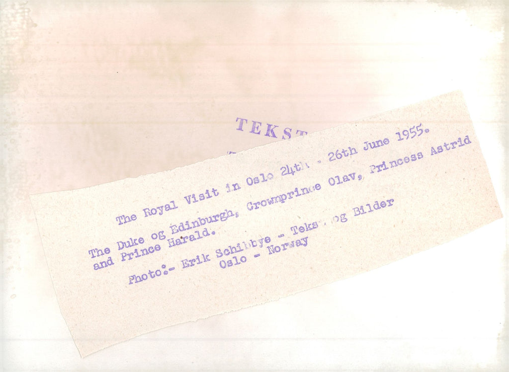 Queen Elizabeth's official visit to Oslo. Here, Prince Philip, Crown Prince Olav, Princess Astrid and Prince Harald - Vintage Photograph