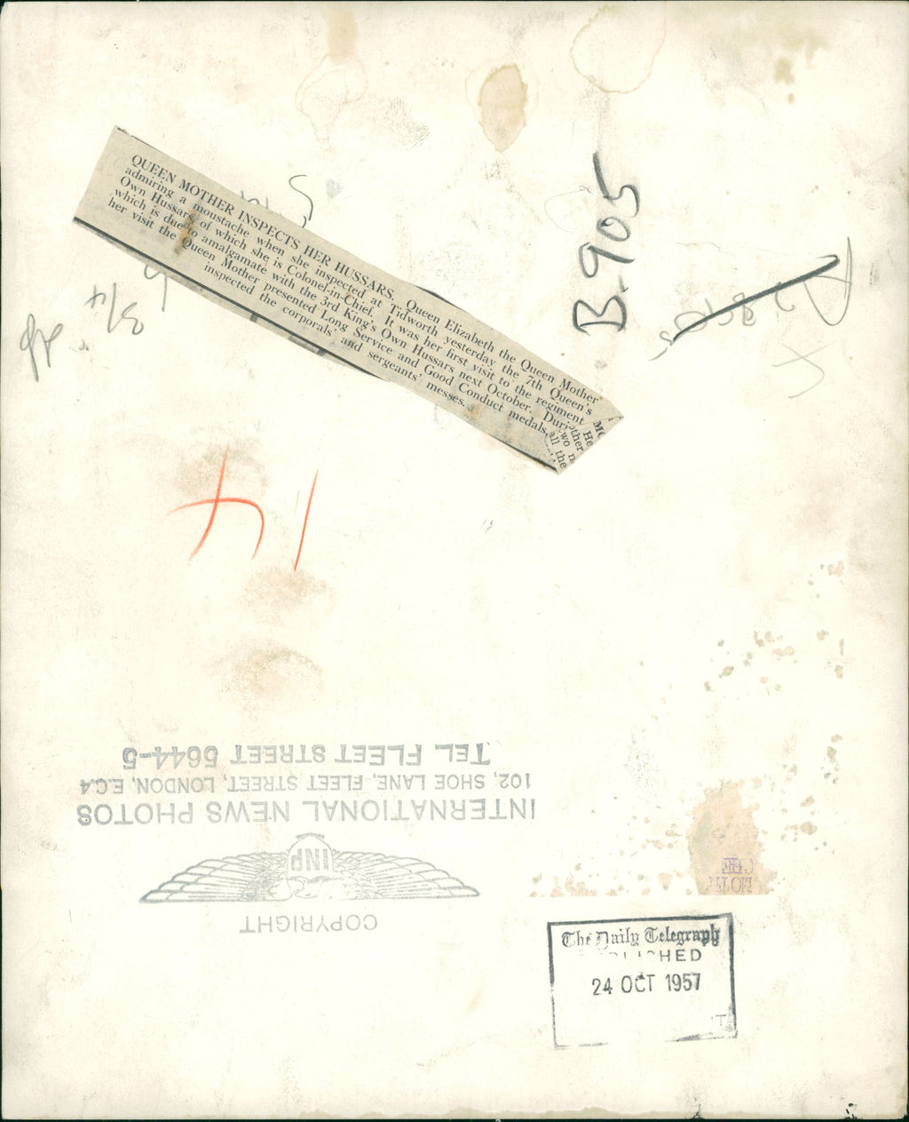Queen Elizabeth The Queen Mother inspect her hussars. - Vintage Photograph