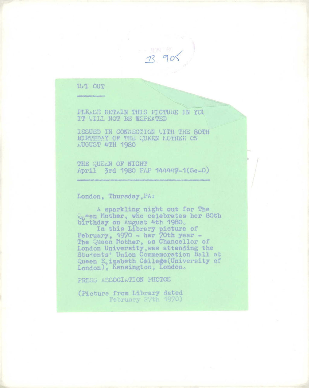 All our press photos are LIMITED ARCHIVE ORIGINALS - they are the actual prints that were used by the newspapers, they are not reprints or digital prints produced by us. All the prints are at least 30 years old and up to 100 years old.