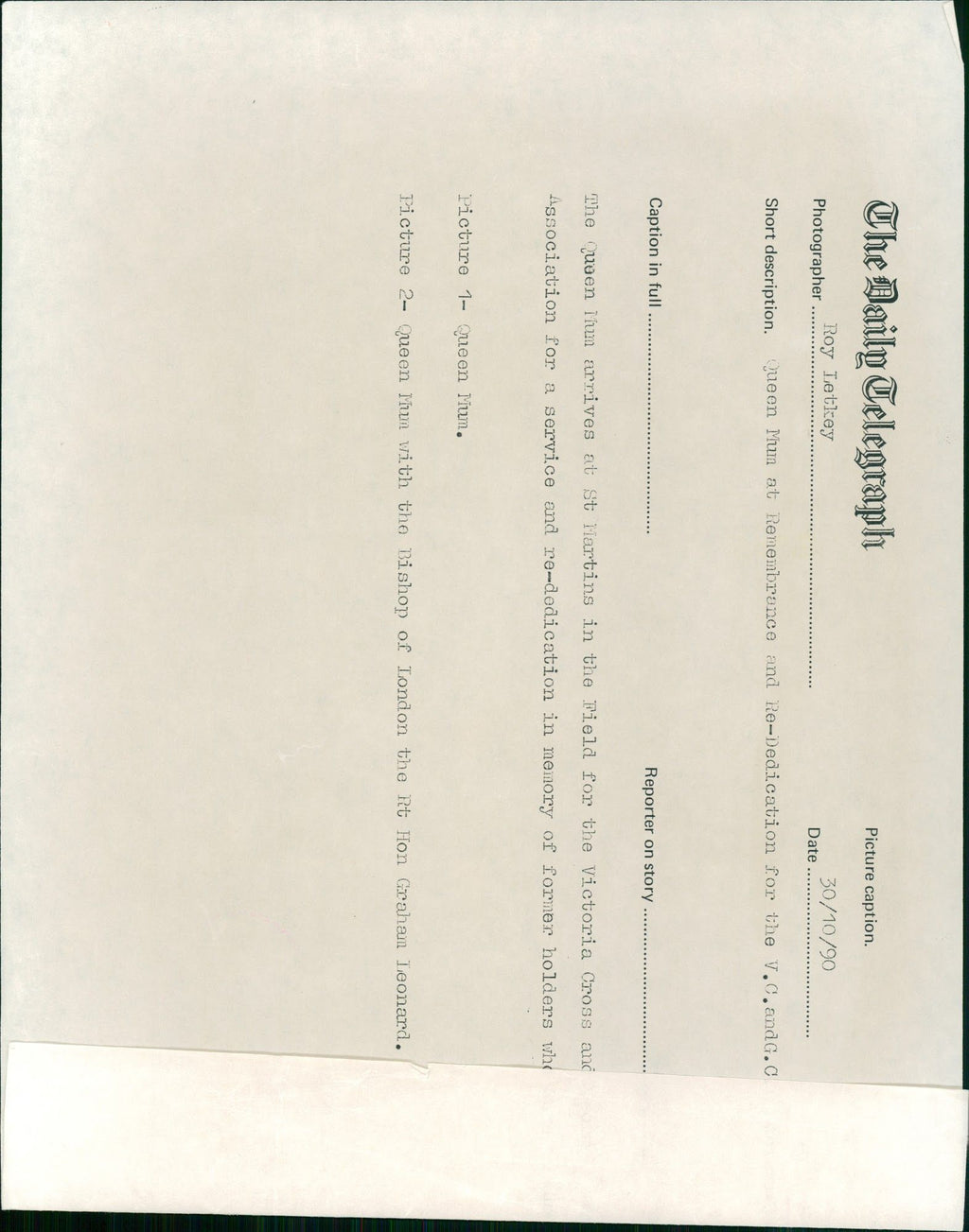 Queen Elizabeth The Queen Mother. - Vintage Photograph