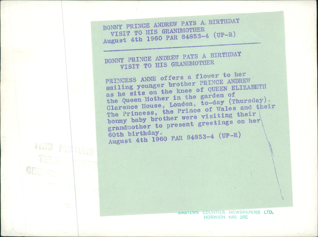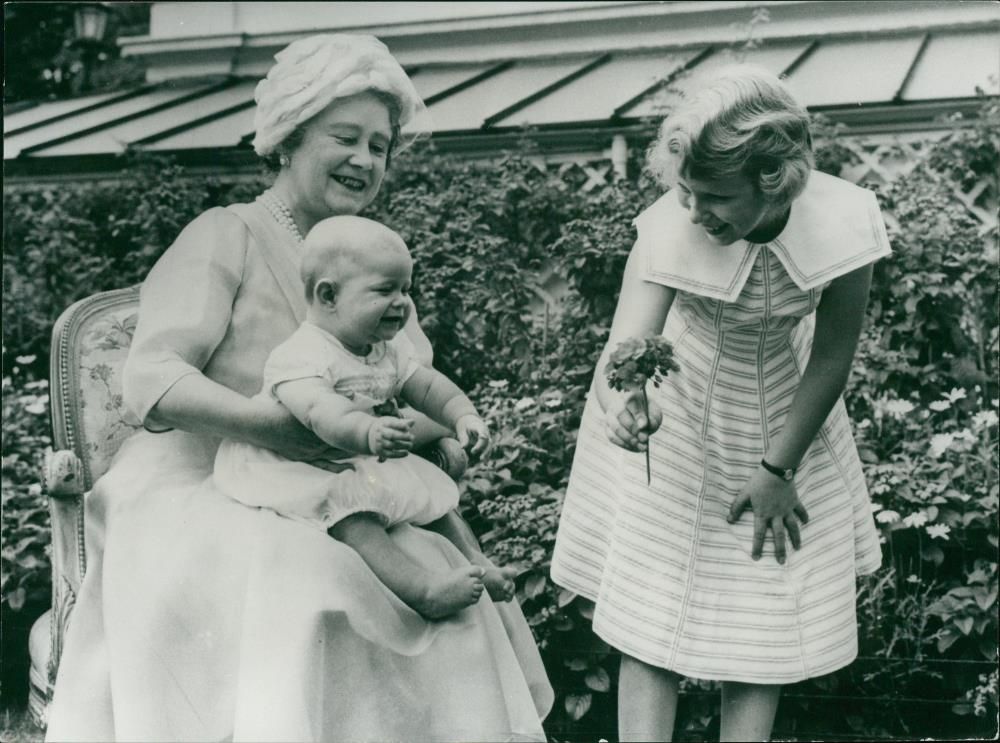 Queen Elizabeth The Queen Mother with Princess Anne and Prince Andrew. - Vintage Photograph