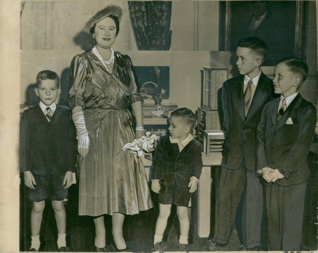 Queen Elizabeth The Queen Mother with the grandchildren of Mr. Stanley. - Vintage Photograph