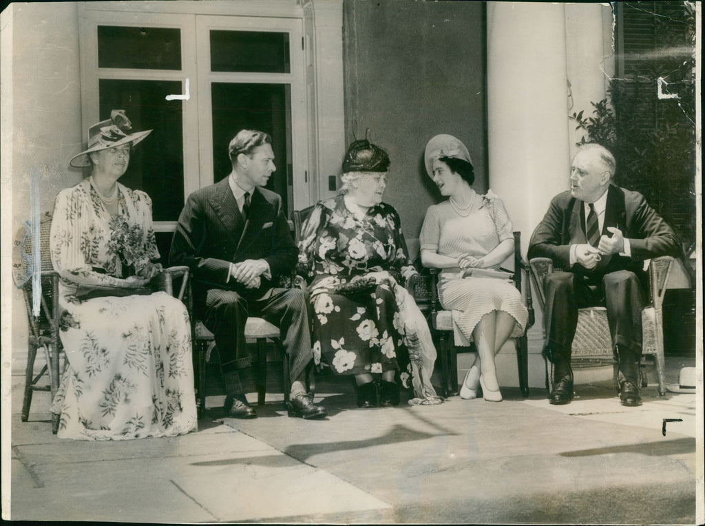 An intimate group at Hyde Park, with the President mother in the center. Below, leaving the little village church of St. James at Hyde Park, where their Majestic had attended morning service with members of the Roosevelt family. An intimate group at Hyde Park, with the President mother in the center. Below, leaving the little village church of St. James at Hyde Park, where their Majestic had attended morning service with members of the Roosevelt family.