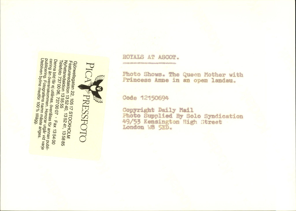 All our press photos are LIMITED ARCHIVE ORIGINALS - they are the actual prints that were used by the newspapers, they are not reprints or digital prints produced by us. All the prints are at least 30 years old and up to 100 years old.