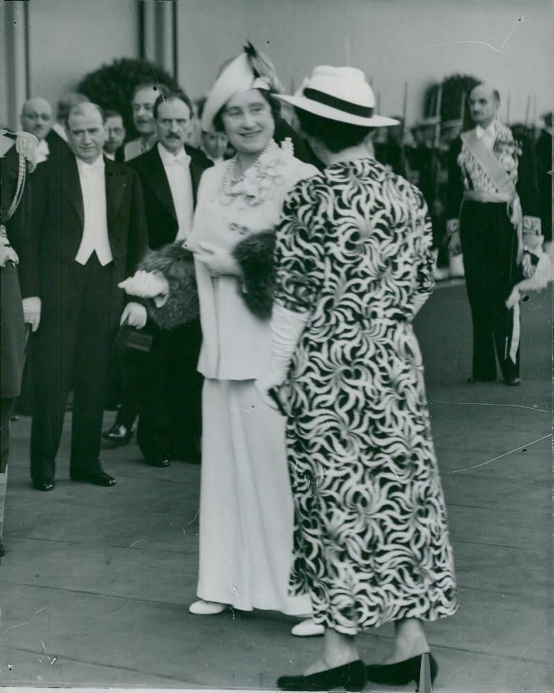 The British King's visit to Paris in 1938, Queen Elizabeth, in conjunction with President Lebrun's spouse - Vintage Photograph