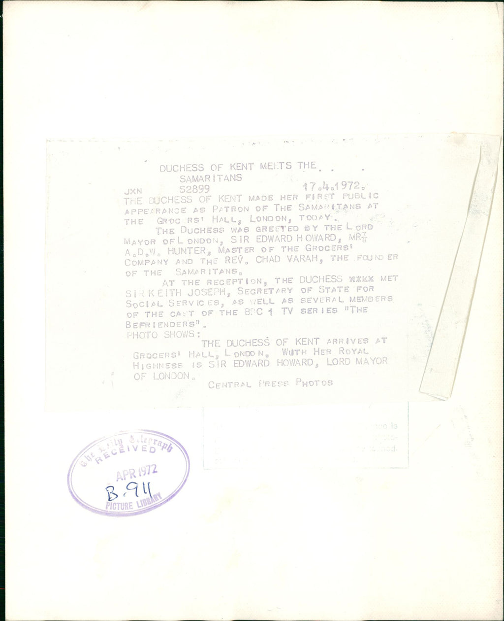 All our press photos are LIMITED ARCHIVE ORIGINALS - they are the actual prints that were used by the newspapers, they are not reprints or digital prints produced by us. All the prints are at least 30 years old and up to 100 years old.