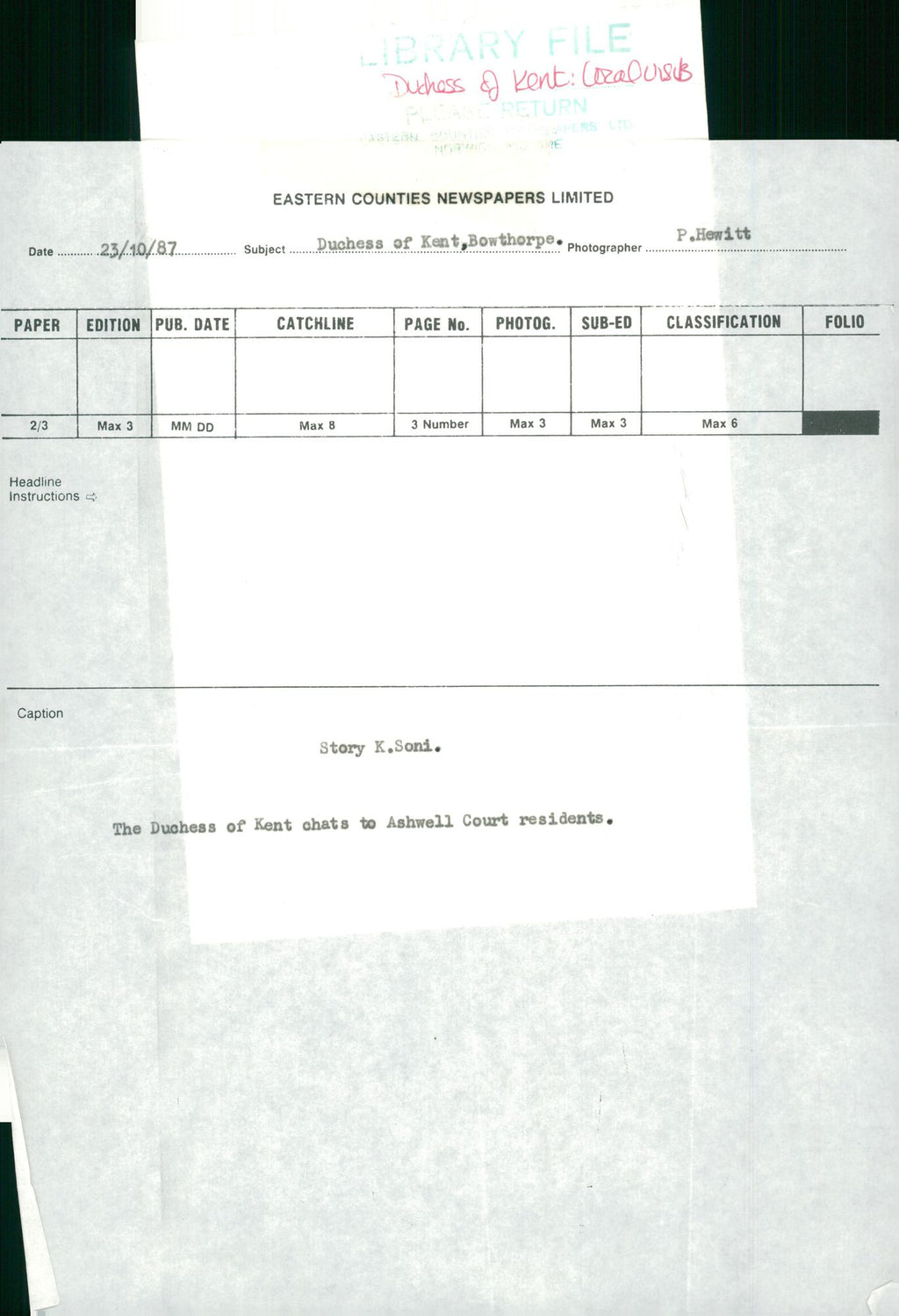 The Duchess of Kent chats to Ashwell Court residents - Vintage Photograph