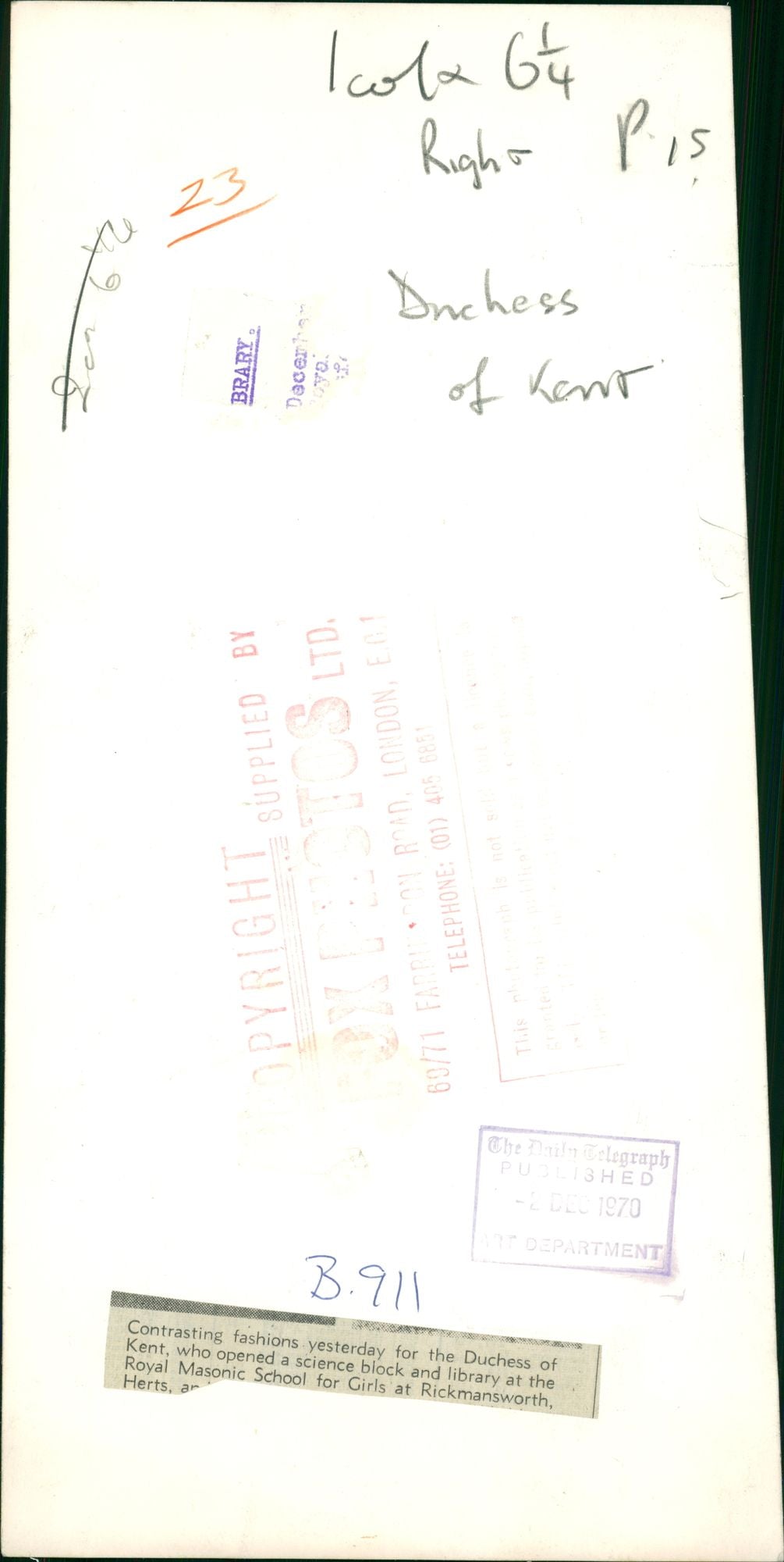 The Duchess of Kent at the Royal Masonic School for Girls at Rickmansworth, Herts. The Duchess of Kent at the Royal Masonic School for Girls at Rickmansworth, Herts.