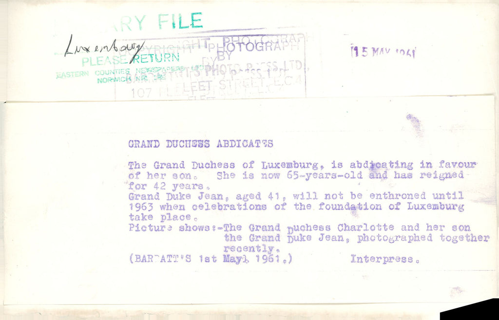 The Grand Duchess Charlotte and her son the Grand Duke Jean. - Vintage Photograph
