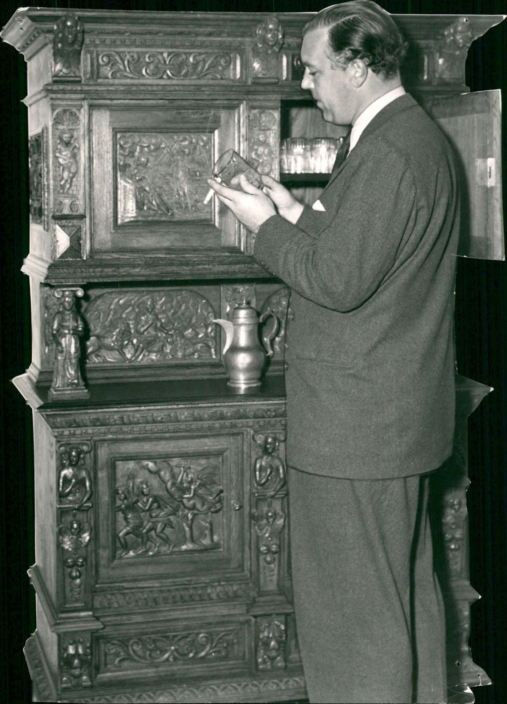 Prince Bertil has now moved in just for his American journey to his nine room villa on the Djurgårdsbrunnskanalen. Prince Bertil holding Karl XIII's glass which the cupboard can hold 90 and which Hallandshertigen inherited from Prince Eugen.