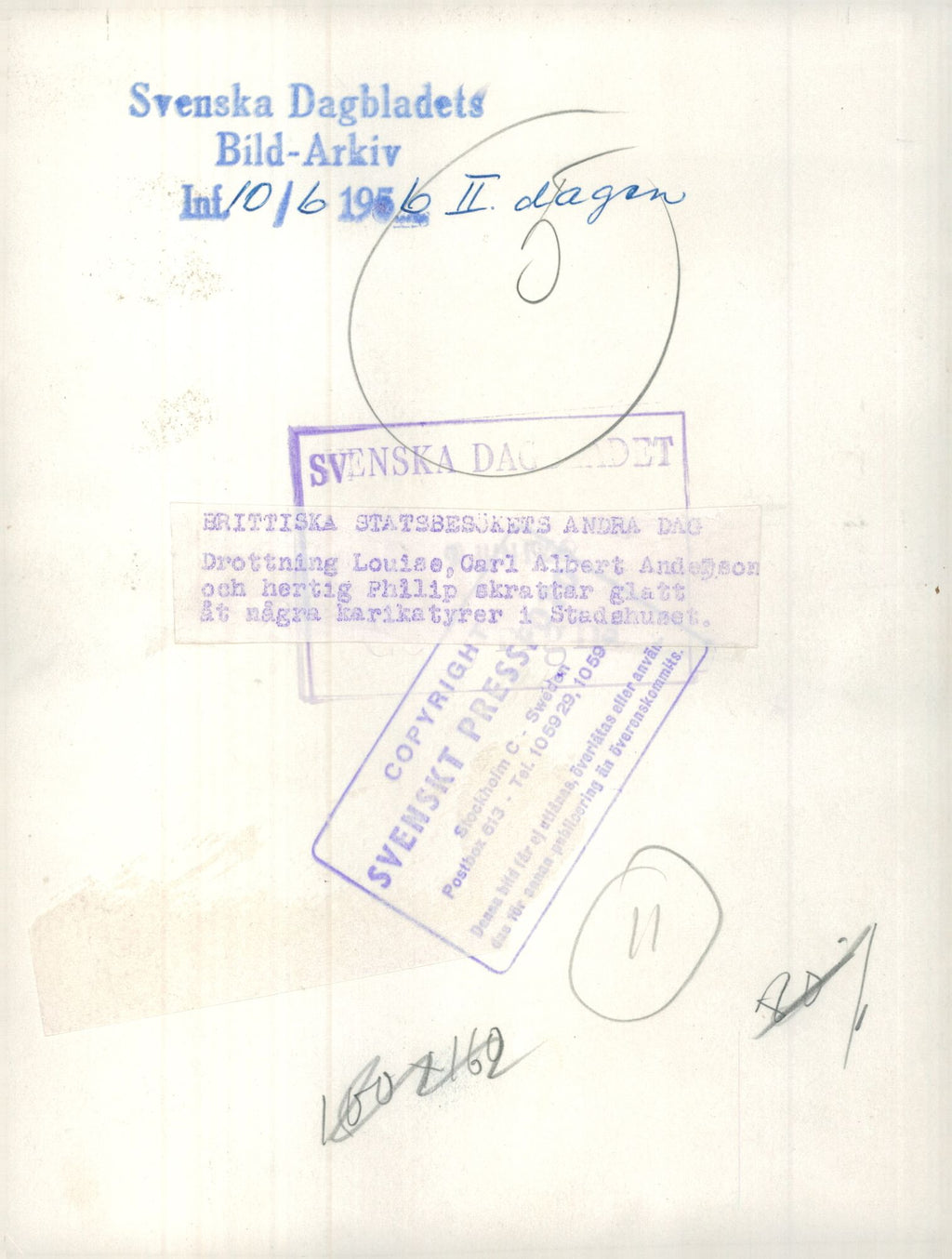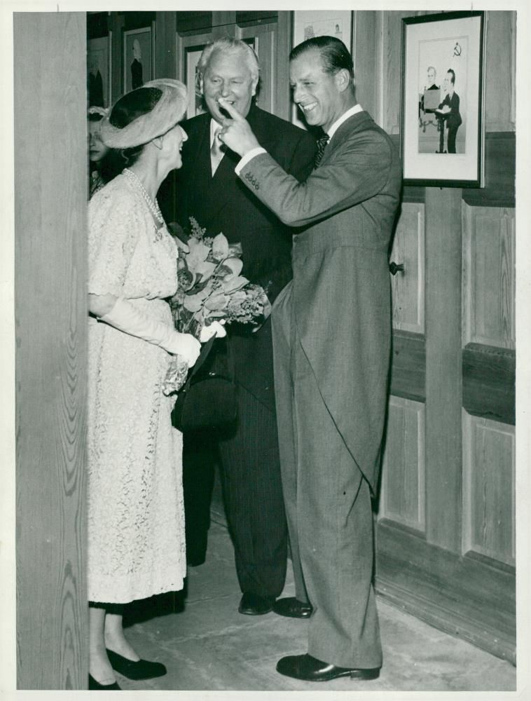 The second day of the British State visit, Queen Louise, Carl Albert Andersson and Duke Philip are seen in the picture. - Vintage Photograph
