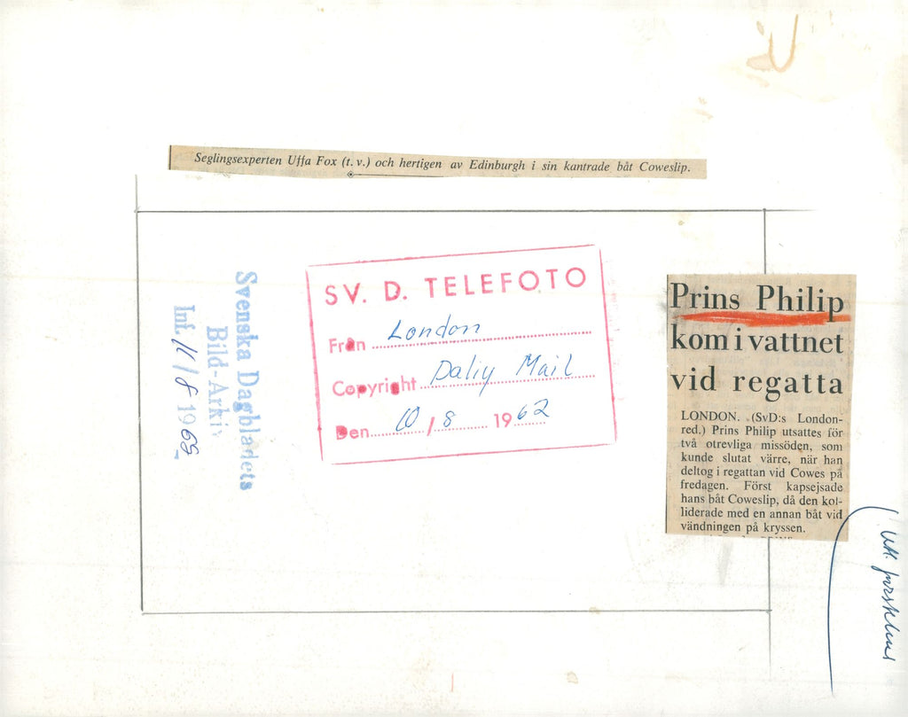 Uffa Fox and the Duke of Edinburgh in his crooked boat Coweslip - Vintage Photograph