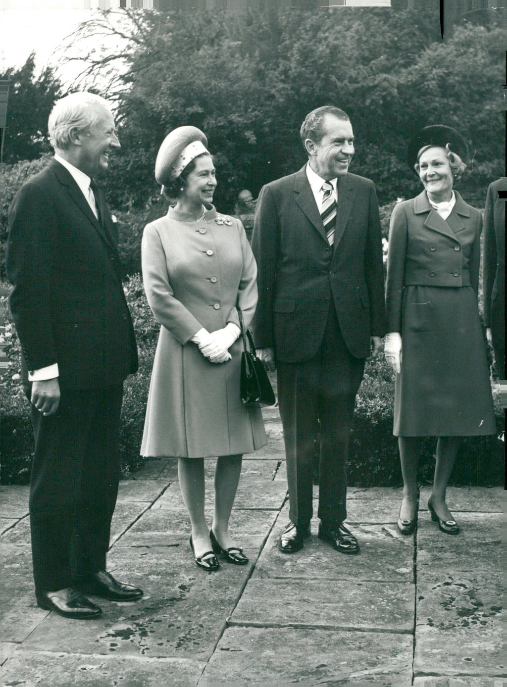 US President Nixon with wife meets with England's Prime Minister Edward Heath and England's Queen Elizabeth - Vintage Photograph
