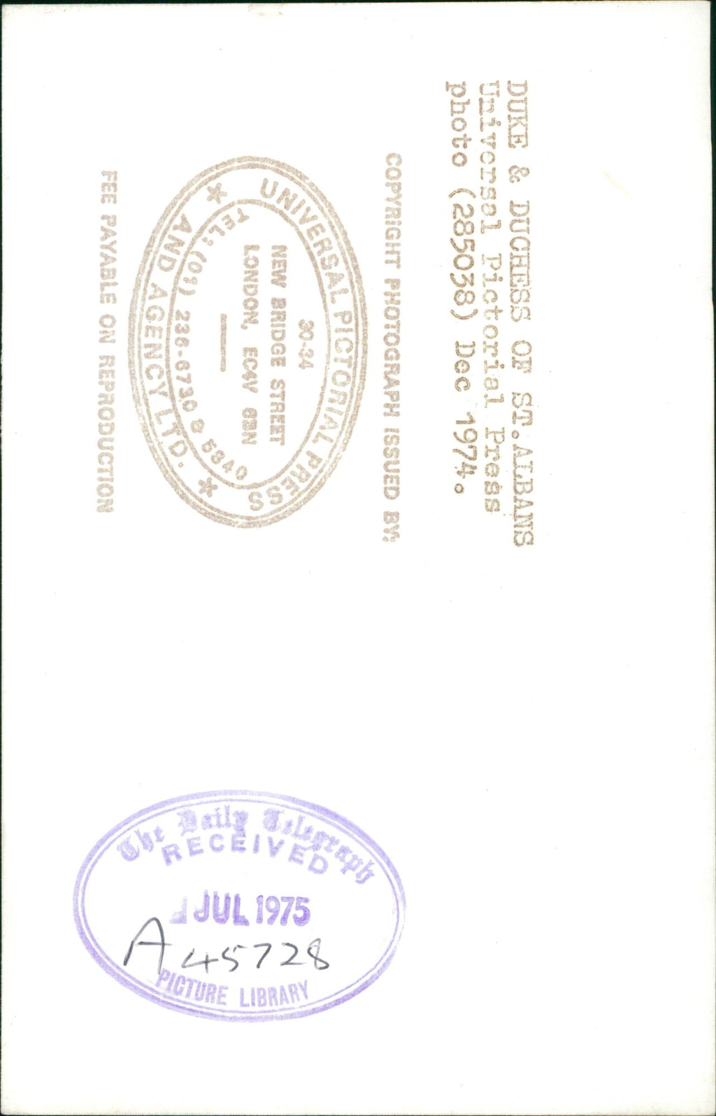 All our press photos are LIMITED ARCHIVE ORIGINALS - they are the actual prints that were used by the newspapers, they are not reprints or digital prints produced by us. All the prints are at least 30 years old and up to 100 years old.