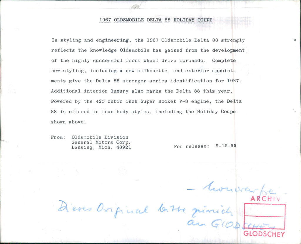 1967 Oldsmobile Delta 88 Holiday Coupe - Vintage Photograph