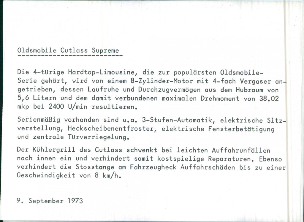 1973 Oldsmobile Cutlass Supreme - Vintage Photograph
