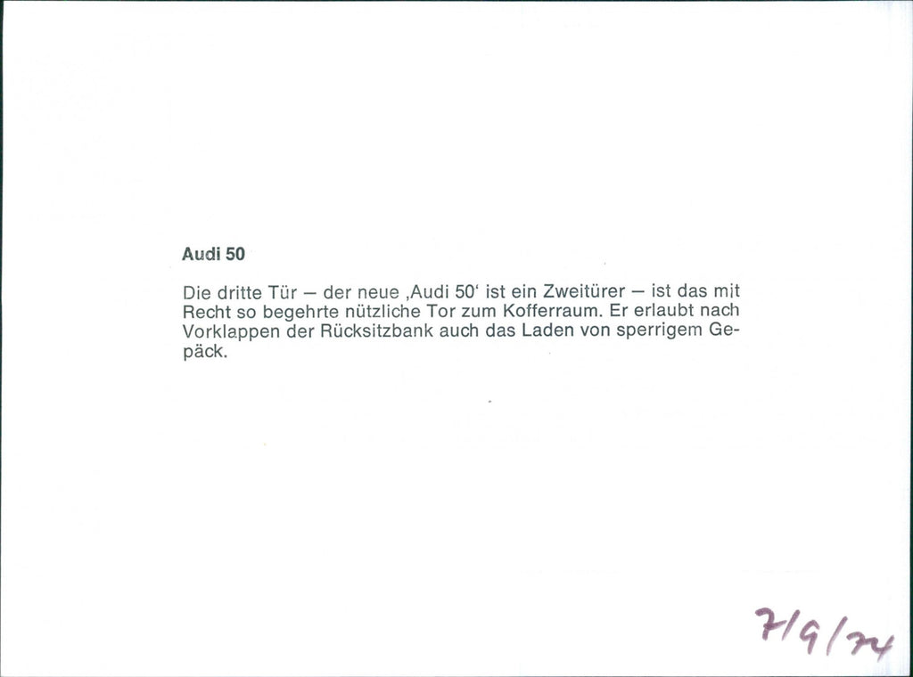1974 Audi 50 - The third door - the latest 'Audi 50' is a two-door car - is the useful gate to the trunk, which is rightly coveted. It also allows bulky luggage to be loaded after the back seat has been folded forward.