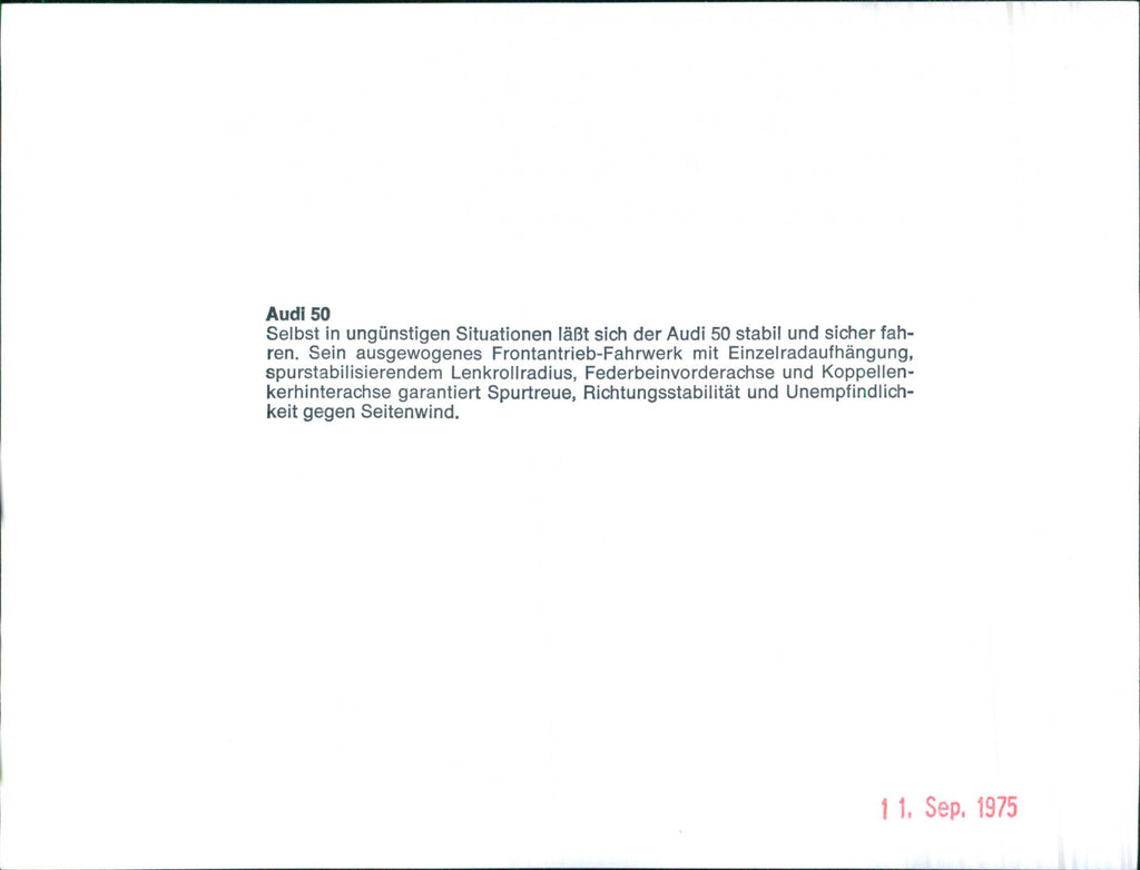 Audi 50 Even in unfavorable situations,can be driven stably and safely. Its balanced front-wheel drive chassis with independent wheel suspension, steering-stabilizing steering wheel radius, front strut axle and coupling link rear axle guarantees directional stability.