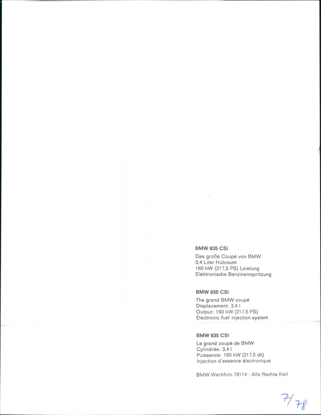 1978 BMW 635 CSi, the grand BMW coupé. Displacement: 3.4 I. Output: 160 kW (217.5 PS). Electronic fuel injection system.